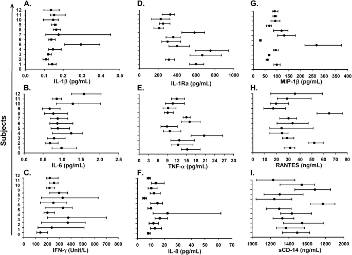 Cytokines, chemokines, adipocytokines, soluble cell receptors, and immune activation markers play an important role in immune responsiveness and can provide prognostic value since they reflect underlying conditions and disease states. This study was undertaken to investigate the components of biological variation for various laboratory tests of blood immunological biomarkers.