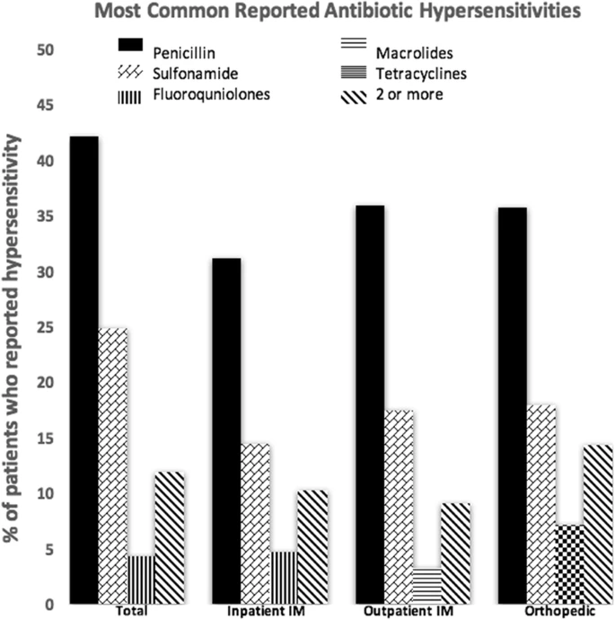 Studies have shown the discrepancy between self-reported antibiotic allergies and true allergies. Inaccurate reporting of antibiotic hypersensitivities can limit treatment options and result in use of more expensive antibiotics and contribute to resistance.