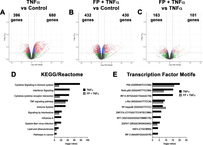 To further understand the effects of TNFα and IFNγ on corticosteroid sensitivity in the context of neonatal and pediatric asthma, we performed RNA sequencing (RNA-seq) on human pediatric ASM treated with fluticasone propionate (FP), TNFα, and/or IFNγ.