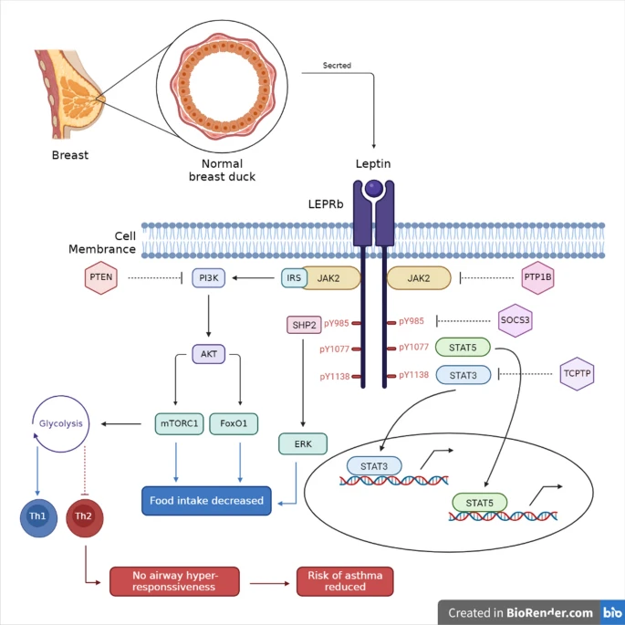 | Molecular pathways of leptin in obesity-related asthma development |