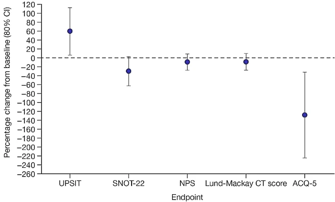 Percentage change from baseline in efficacy endpoints at Day 61 in patients with CRSwNP |