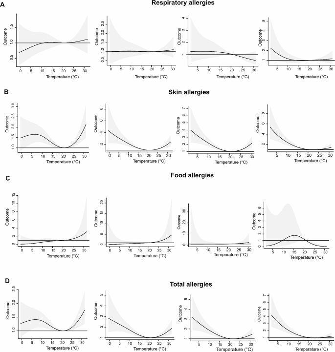 The effects of temperature and relative humidity on different types of children’s allergic diseases have not been comprehensively evaluated so far. This study aims to assess the impact of temperature and relative humidity variability on children’s allergic diseases and to identify the critical time window.